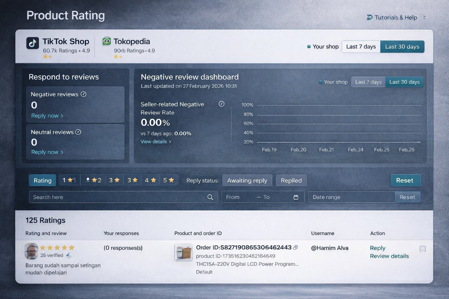 Rating 4.9 / 5.0 di Tokopedia adalah bukti kepercayaan pelanggan sejak 2015.