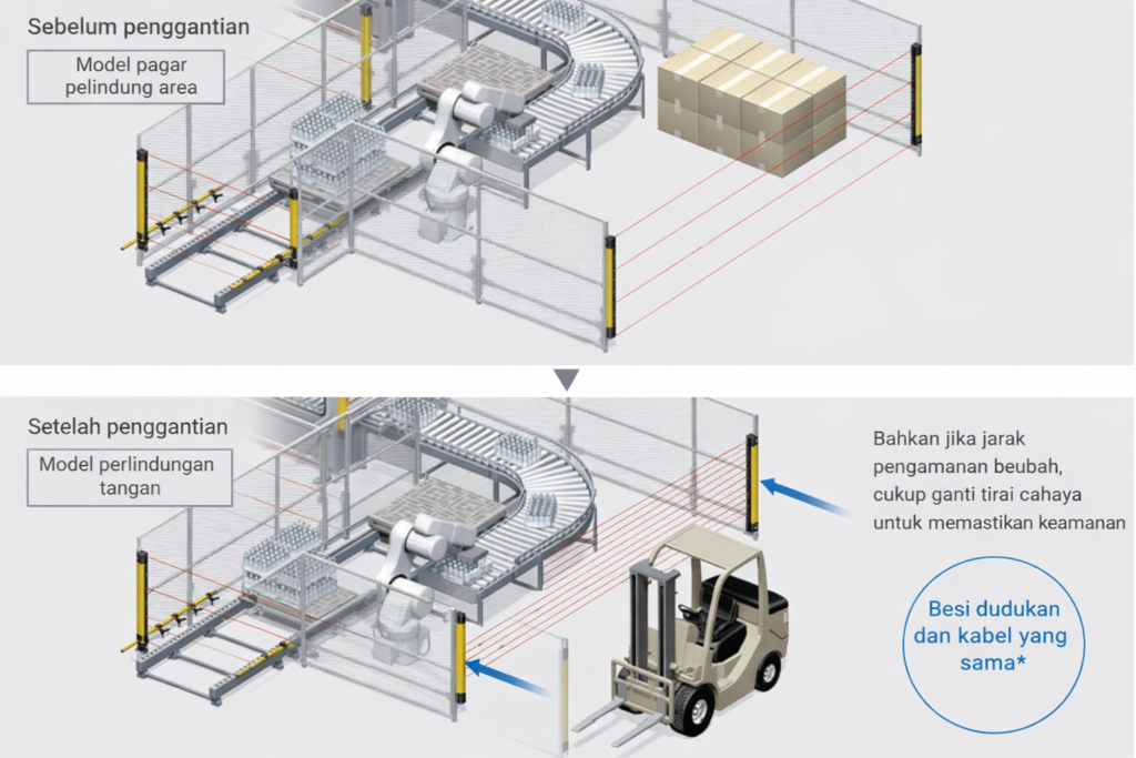 Penggunaan Area Sensor atau Safety Light Curtain tidak hanya meningkatkan keselamatan operator tetapi juga membantu perusahaan menjaga efisiensi sistem otomasi industri.