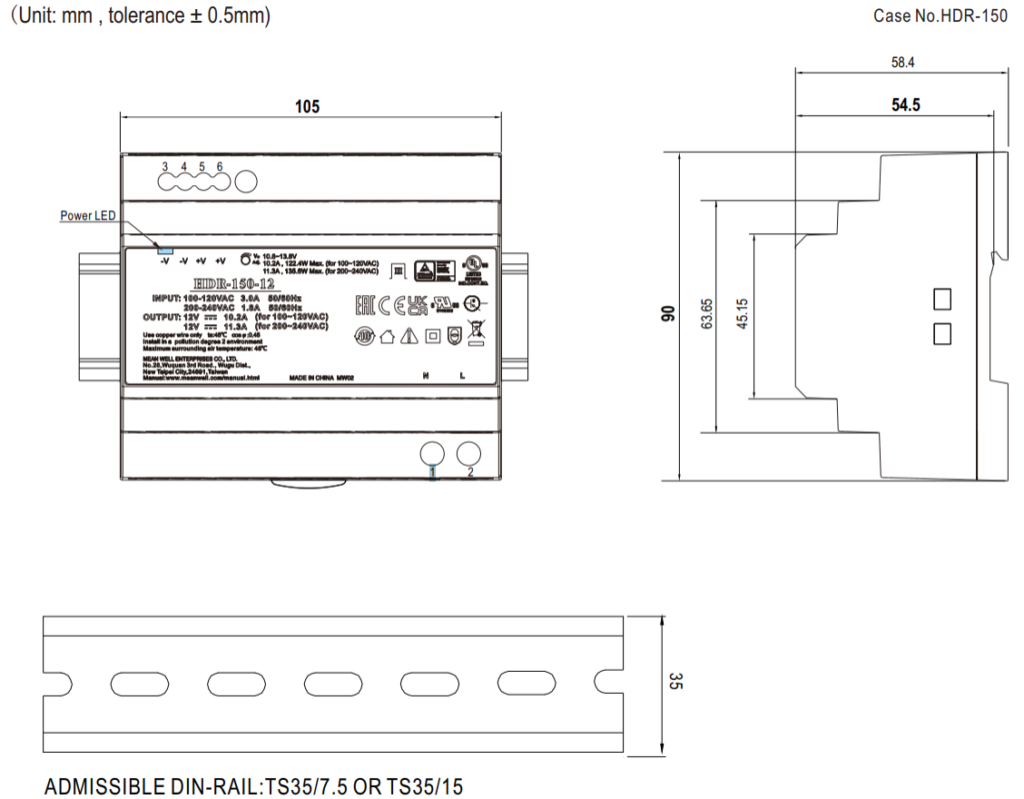 HDR-150 merupakan power supply AC-DC single output yang dapat dipasang pada DIN rail TS-35. Dengan lebar hanya 105mm, perangkat ini mampu memberikan daya hingga 150W, cocok untuk sistem industri skala menengah hingga besar.