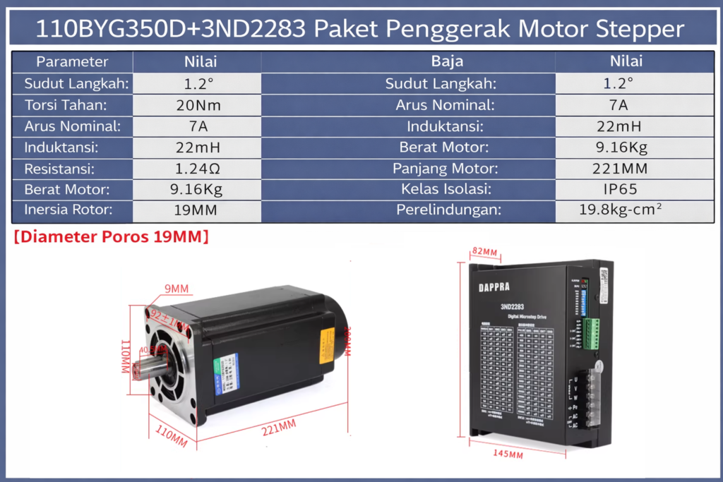 🔗 Produk Resmi: 110BYG350D 20Nm + Driver 3ND2283 (Paket Motor Stepper 3-Phase)