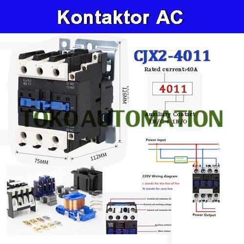CJX2-4011 CJX2 4011 220V AC 40A 1NO 1NC Contactor Relay SD60 Feature: Rating: 220 VAC; 50/60HZ Rated Operational Current: 40A; Number of Contact: 3P + 1 NO 1 NC Conventional Thermal Current(Ith): 60A; Rated Insulation Voltage(Ui): 690V Overall Size(Approx.): 111 x 76 x 127mm / 4.37 #39; #39; x 3 #39; #39; x 5 #39; #39;(L*W*H) Package Content: 1 x AC Contactor