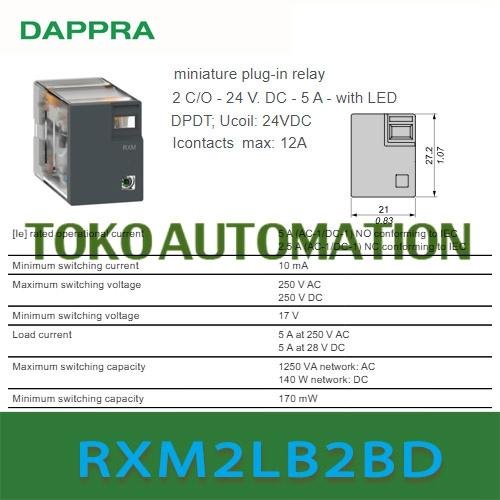 RXM2LB2BD 2CO 24VDC 5A with LED miniature plug-in relay SA77
