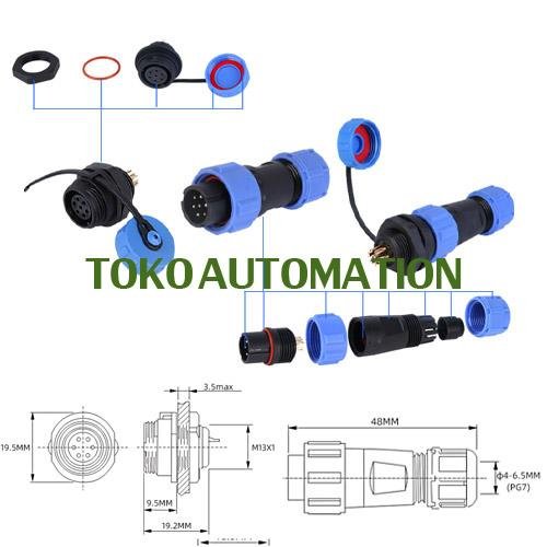 SP13 7 pin 7pin Konetor Water proof cable Aviation Connector SK16 Description: Watertight panel connector for conductors with a diameter of 4 – 6 mm. Gold-plated contacts. Feature: Maximum current: 5A Maximum voltage: 250V AC Protection class: IP68 Operating temperature: -20 – 110°C Relative humidity: 90% – 95% Material: Polyamide