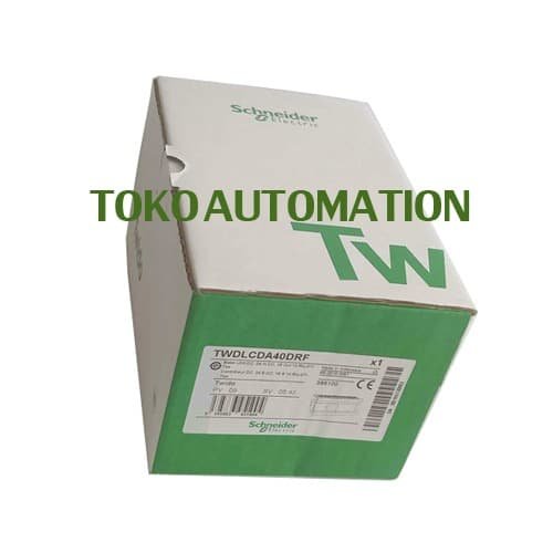 TWDLCDA40DRF 40 I/O Electric Twido Logic Module 24 V DC supply PK49 Descirption: Schneider Electric Twido Logic Module, 24 V dc Relay, Transistor, 24 x Input, 14 x Output With Display. Feature: 24 Vdc inputs Isolated outputs 100base-TX ethernet via RJ45 (stock no. 528-8643 only) Output rating for relay outputs: 2A@ 250Vac Output rating for transistor outputs: 0.3A@ 24Vdc Dimensions: H90 x W80 x D70mm (10 and 16 I/O) H90 x W95 x D70mm (24 I/O) H90 x W157 x D70mm (40 I/O)
