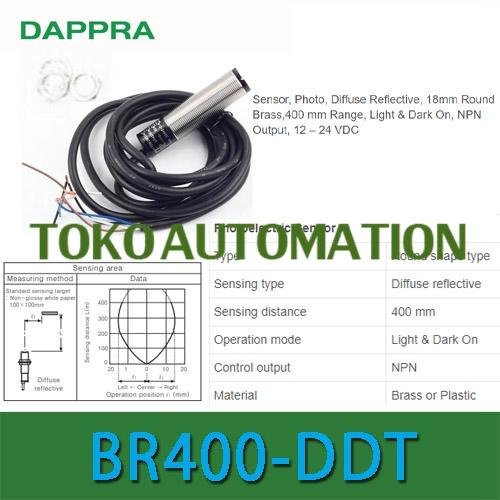 Sensor, Photo, Diffuse Reflective, 18mm Round Brass,400 mm Range, Light & Dark On, NPN Output, 12 – 24 VDC