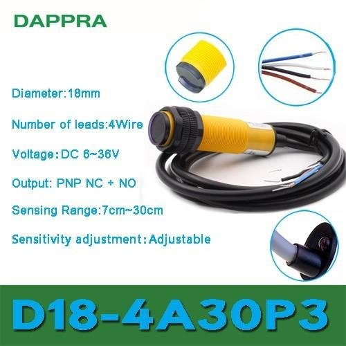 D18-4A30P3 M18 30CM DC 4Wire PNP NC NO Photoelectric Sensor OA16
