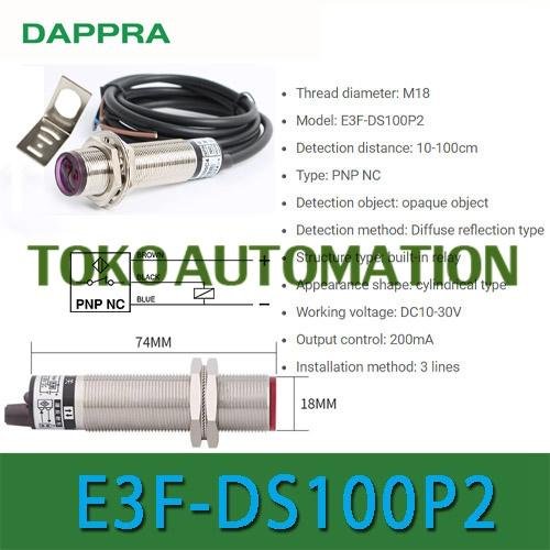 E3F-DS100P2 M18 100CM PNP NC Diffuse Reflection Photoelectric Sensor OH80