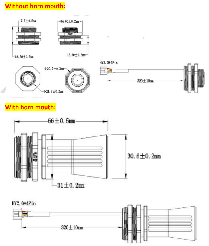 It adopts a fully sealed waterproof ultrasonic transducer, providing strong environmental adaptability. When used with the dedicated horn structure, the sensor supports longer measurement ranges.
